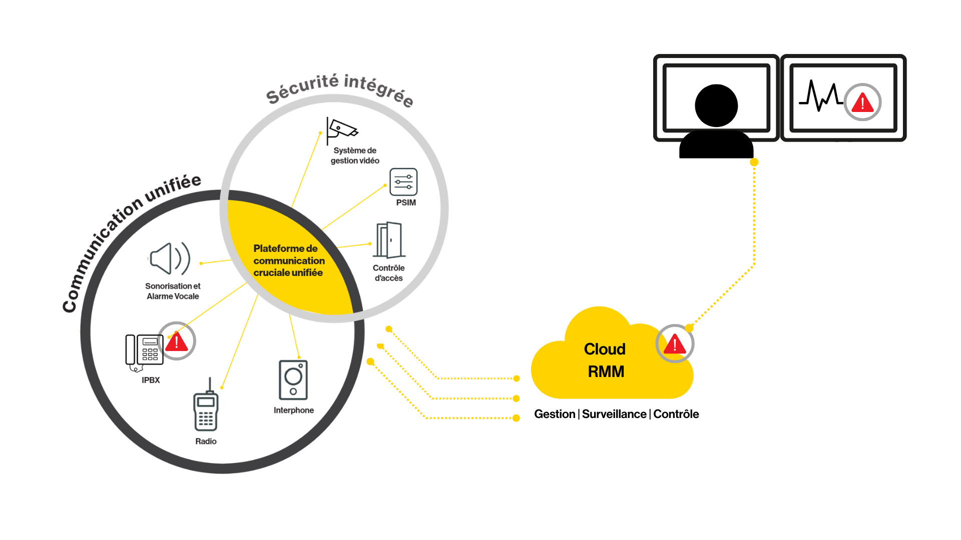 La surveillance et gestion à distance assistées (*Remote Monitoring and Management) par le cloud transforme ce modèle. Au lieu d’attendre que les problèmes apparaissent, les organisations obtiennent une visibilité en temps réel sur l’état et la performance de tous les systèmes de communication. Les problèmes potentiels sont détectés, signalés et résolus avant qu’ils n’affectent les opérations Cette approche proactive, fondée sur les données, réduit les interruptions, diminue les coûts et garantit que les systèmes sont toujours opérationnels quand cela compte le plus.